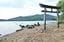 写真中央の湖面に浮かぶ棒のようなものが、沈んでいる鳥居のてっぺん。転載不可