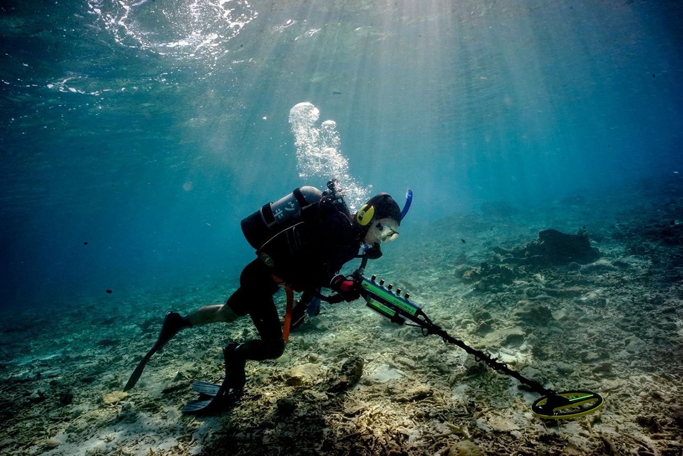 金属探知機を使った探査の様子