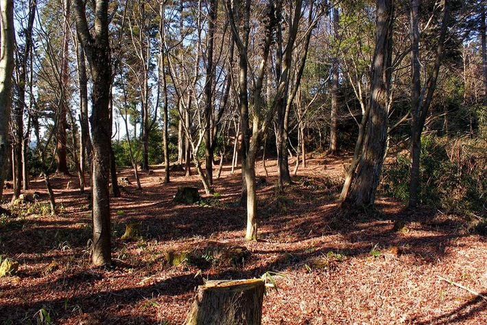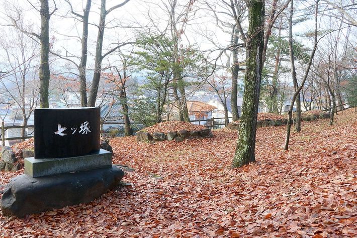 二ノ丸曲輪の「七ツ塚」。落城時の戦没者を葬ったと伝わる