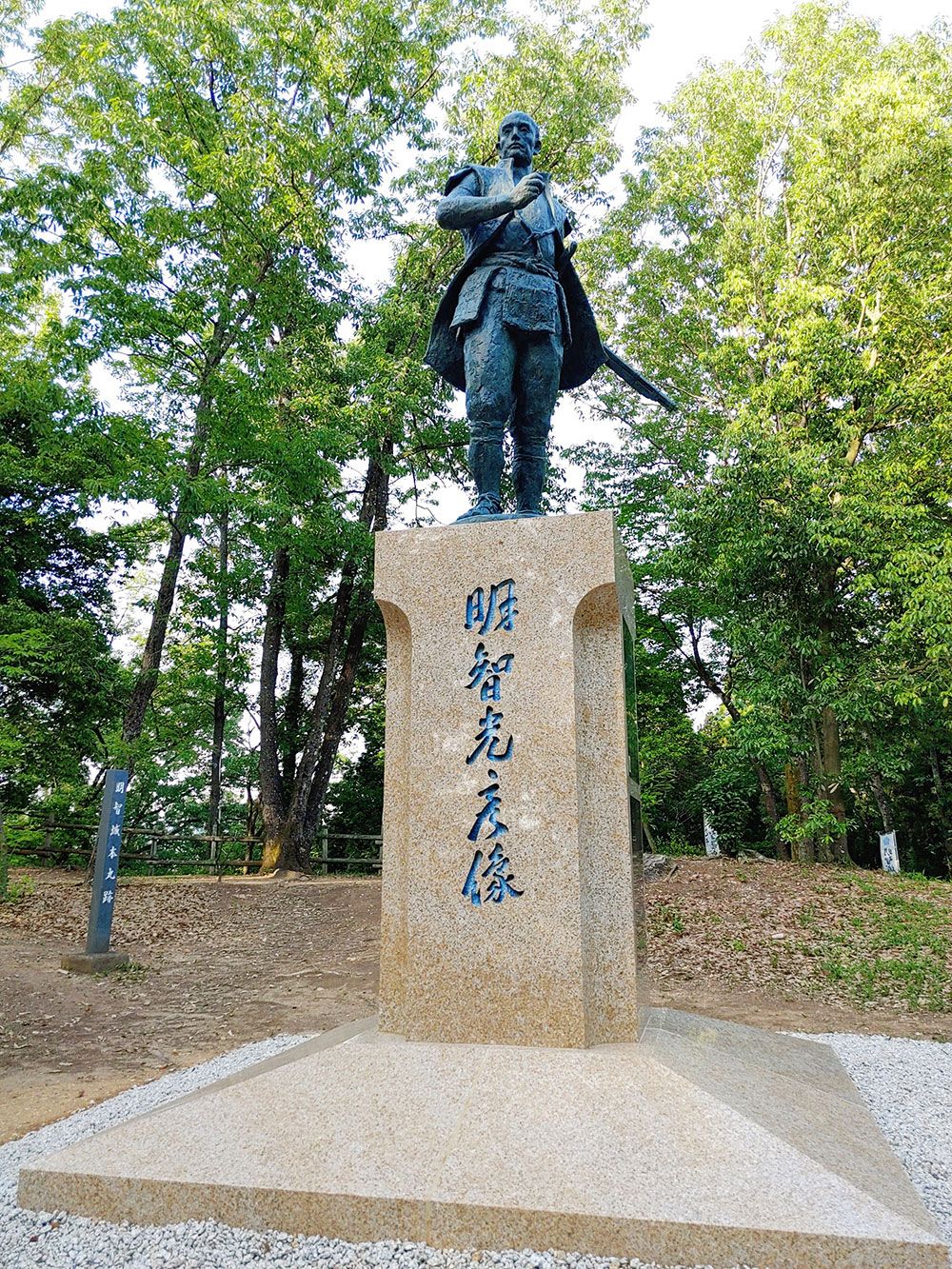 明智城本丸に2020(令和2)年に建てられた光秀像