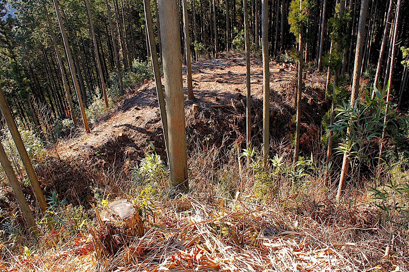 本丸北側の畝状竪堀の一部