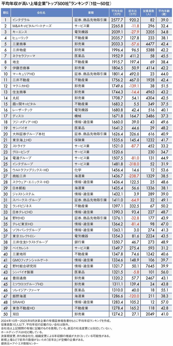 トップは「三菱商事より544万円高い」2577万円…平均年収が高い「全国トップ500社」ランキング2025