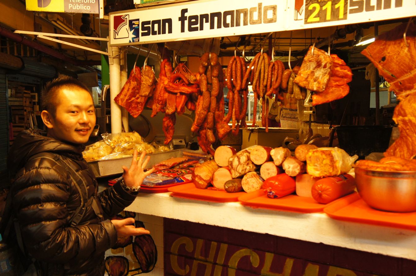 ペルーを訪れた村上さん。さまざまな種類のソーセージが並ぶ
