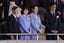 ワールド・ベースボール・クラシック(WBC)1次リーグ、日本対オーストラリアの試合を観戦するため、席に到着された天皇、皇后両陛下と長女愛子さま。右端は野球日本代表前監督の栗山英樹さん=2026年3月8日、東京ドーム[代表撮影]