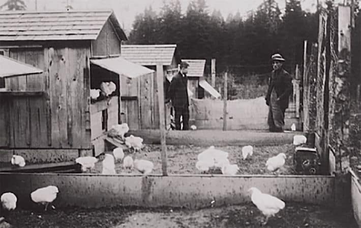 マヨネーズ専用卵を生産するため現在の東京都府中市に設置された西府農場の様子。