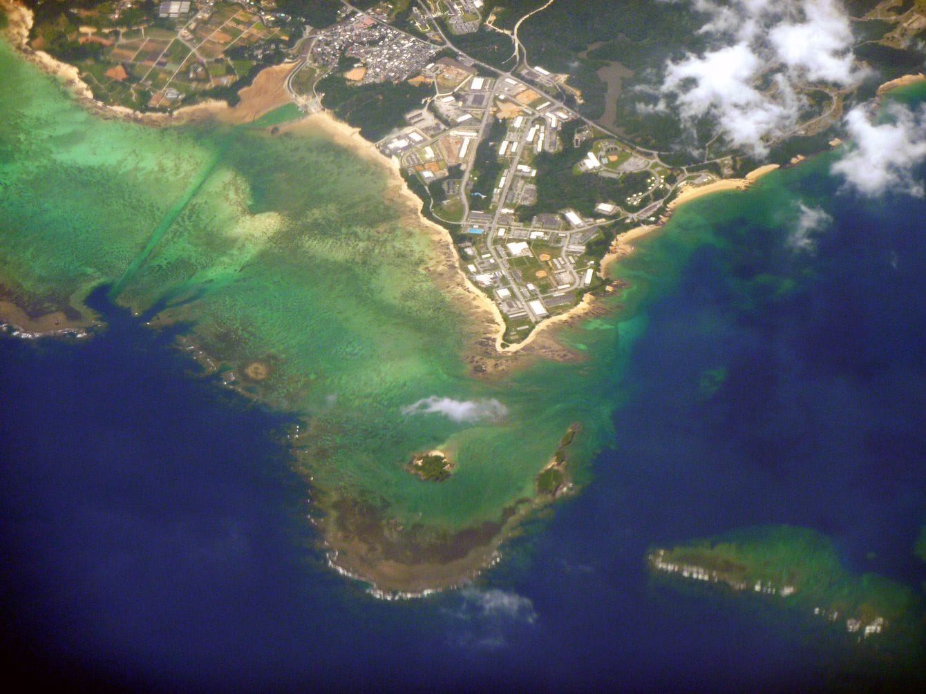 名護市辺野古地区空撮、美しいサンゴ礁のリーフに囲まれる(写真=Sonata/CC-BY-SA-3.0/