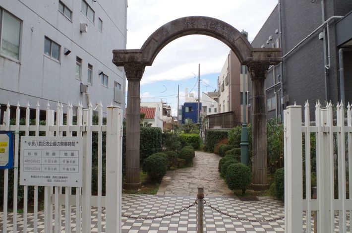 小泉八雲の終焉の地、大久保(新宿区)。ギリシャをイメージした「小泉八雲記念公園」。