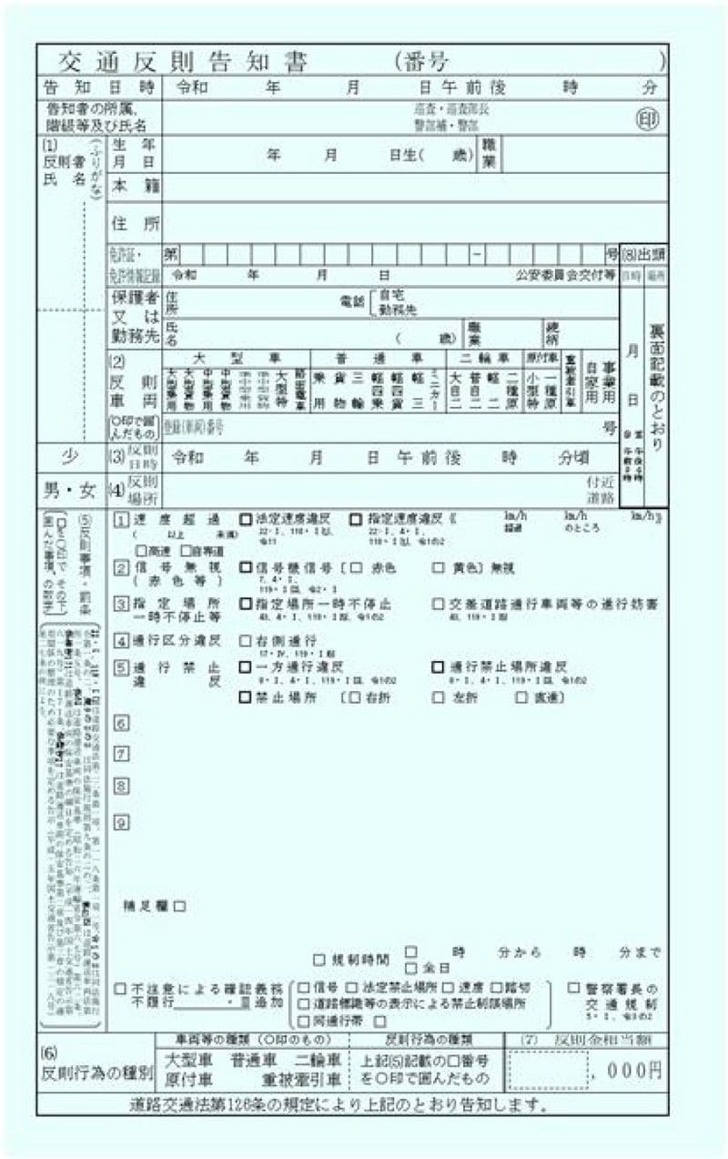 青切符(警察庁「