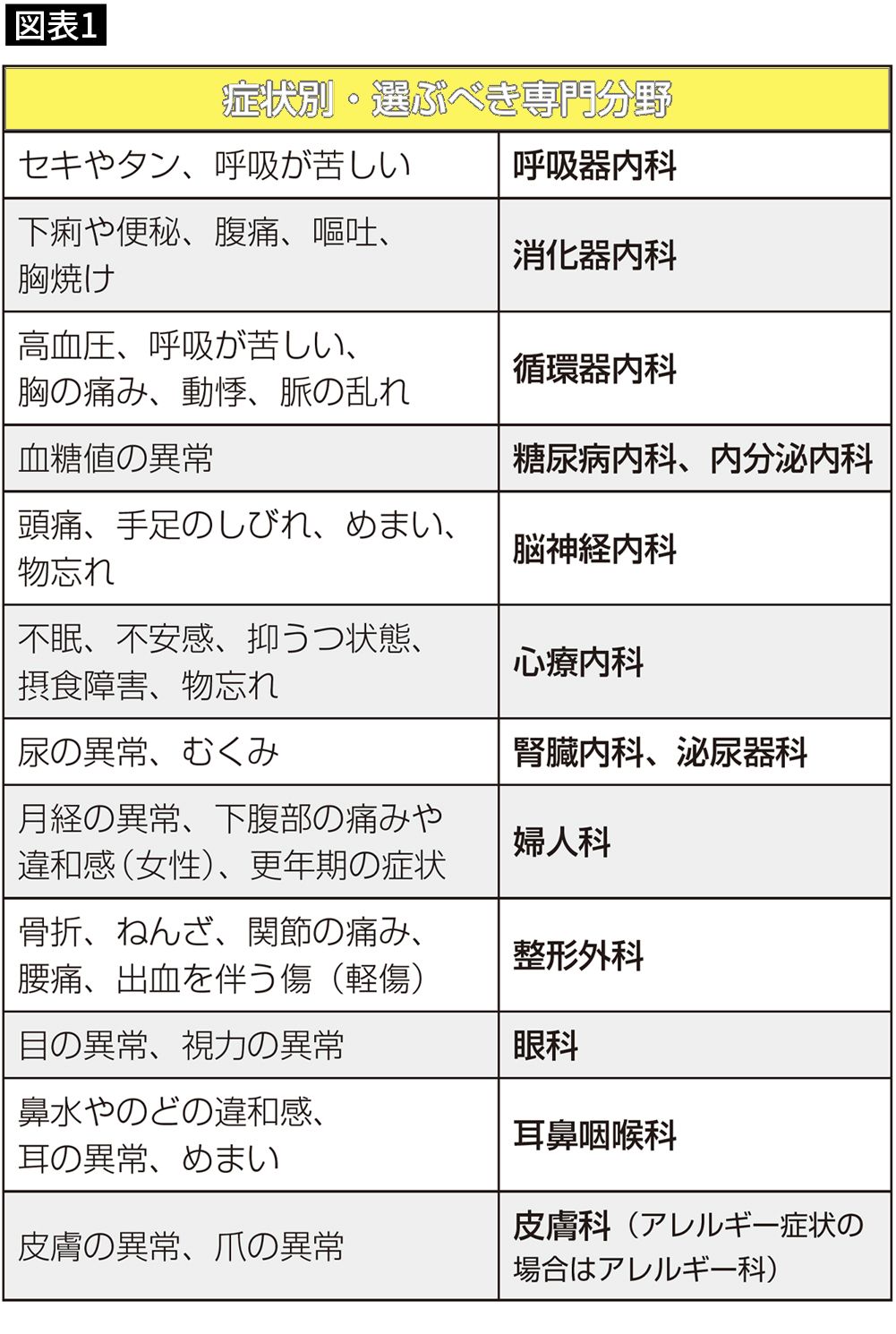 上記の症状から受診する診療科を選び、「○○科 専門医」のようなキーワードでインターネット検索しよう。院長などが「○○専門医」と紹介されている病院を選ぶことが大切。