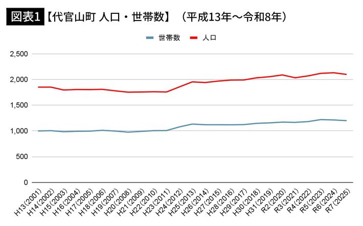 【代官山町 人口・世帯数】(平成13年〜令和8年)。※平成27年1月分より、各月1日現在の表記 ※すべて12/31時点(渋谷区公式サイト「