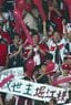 2004年7月、近鉄ファンに囲まれ、試合を観戦するライブドアの堀江貴文社長(中央)=大阪ドーム