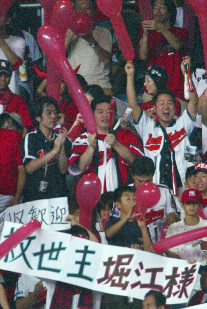 2004年7月4日の大阪ドーム右翼外野席。堀江社長がいるのは北川選手の旗の裏辺り(写真=Gomurafuji/CC-BY-SA-3.0-migrated/