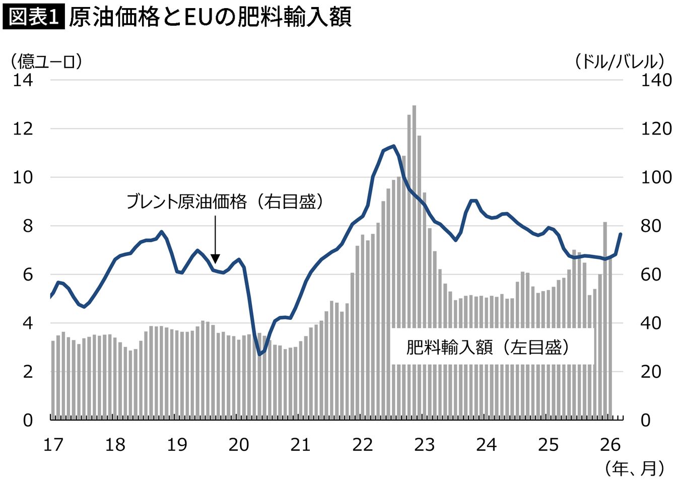 (注)季節調整値の3カ月移動平均 (出所)欧州連合統計局、米エネルギー情報局