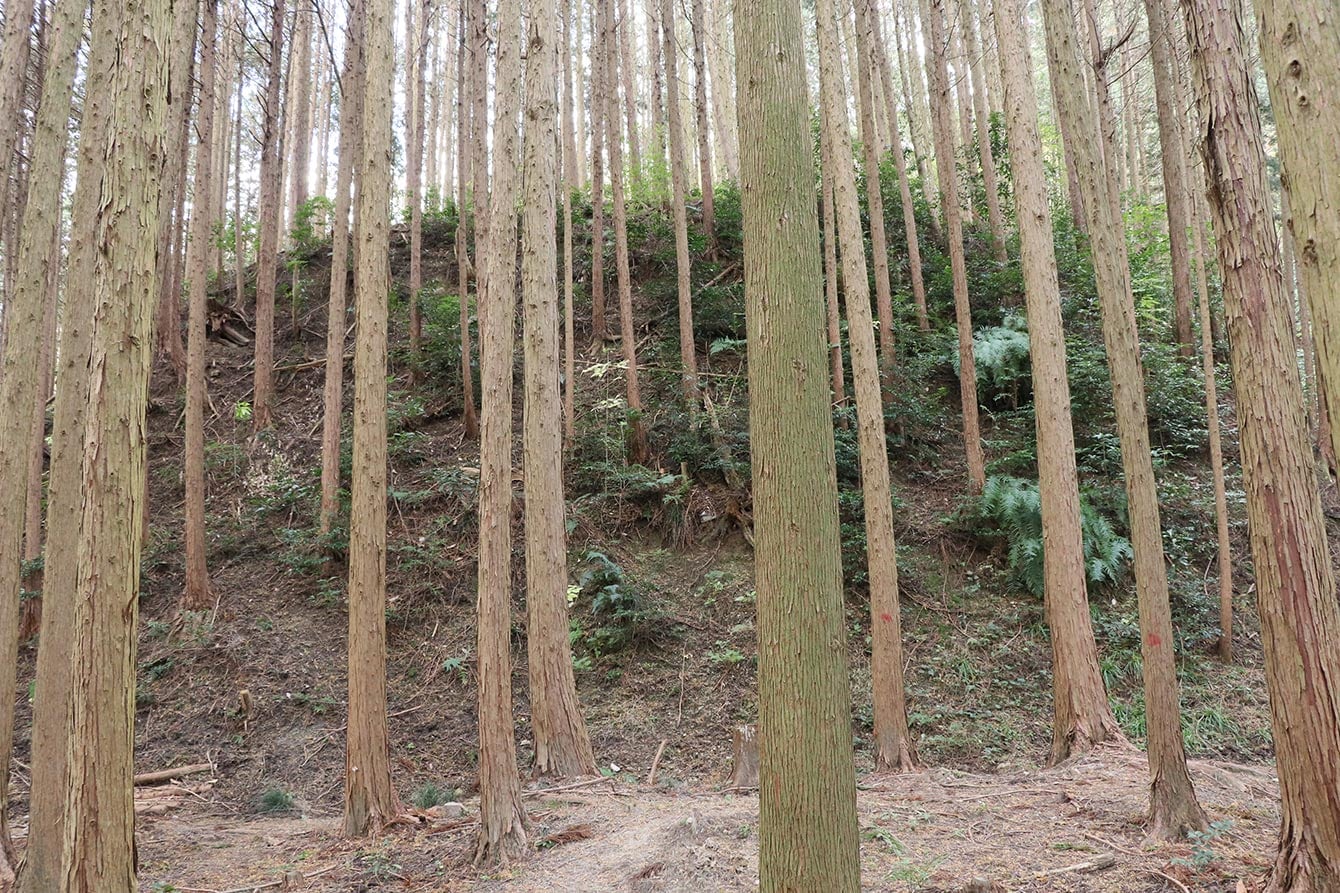 「松永屋敷」のある尾根先端の曲輪には、畝状竪堀群らしき地形も残っていた