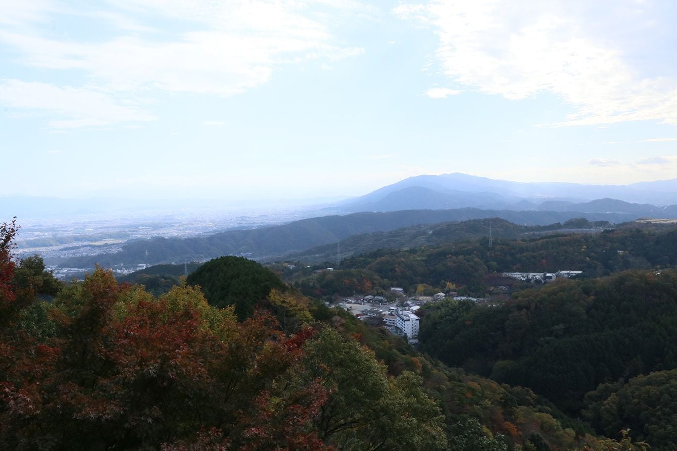 雄岳より北西方面。正面が生駒山地、その左が大阪平野