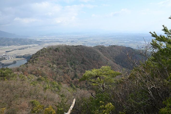 大嶽へ登る途中から本城がある東の尾根を見下ろす。