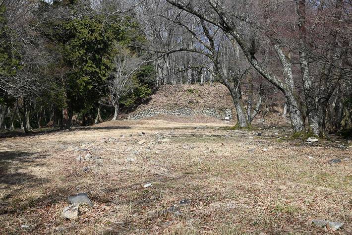土塁に囲まれた大嶽の主郭。