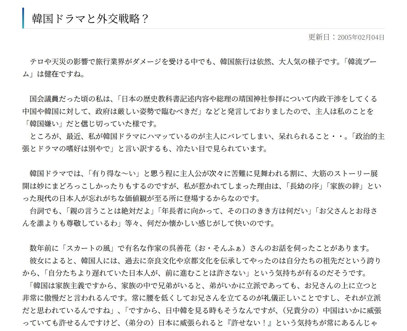 高市早苗首相の公式サイト「コラム」欄のアーカイブより