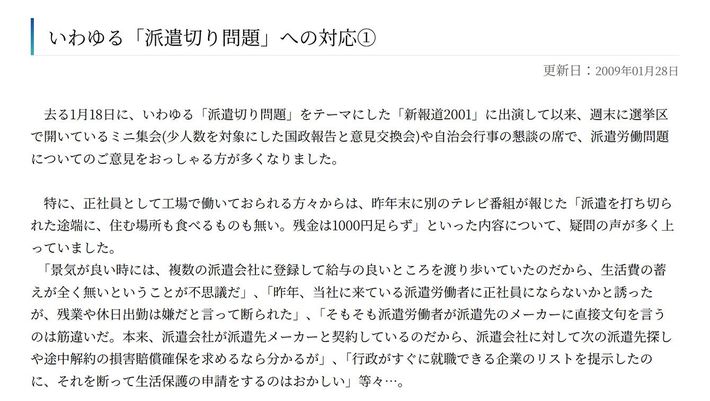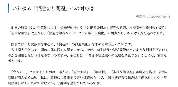 高市早苗首相の公式サイト「コラム」欄のアーカイブより