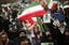 イランの首都テヘランで国旗を掲げながら行進する人々=2026年3月13日(ゲッティ=共同)