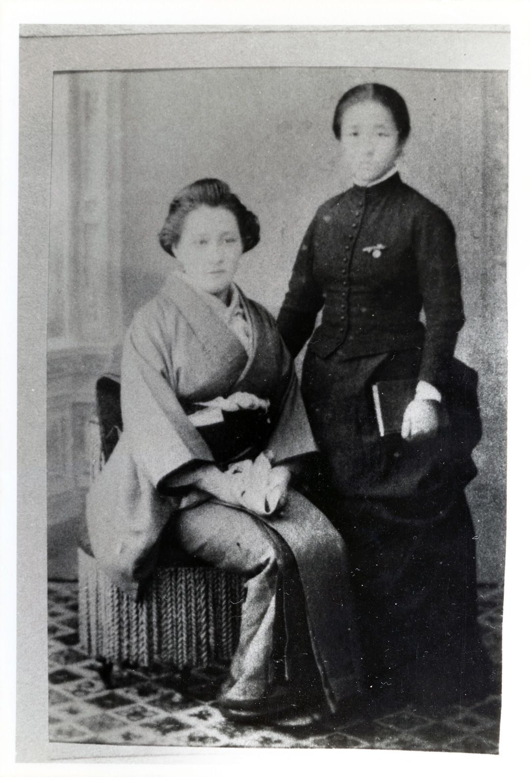 のちに知命堂病院の看護師長となった大関和(右)、知命堂病院院長夫人の瀬尾ソノと(写真=