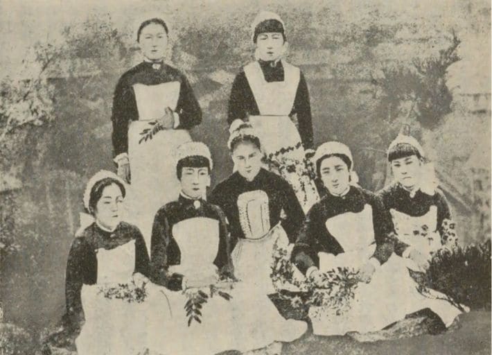 前列右より二人目が大関和。1888年10月26日の卒業記念の撮影と推定(写真=佐波亘『植村正久と其の時代 第5巻』(1938年9月28日発行)/PD-Japan-oldphoto/