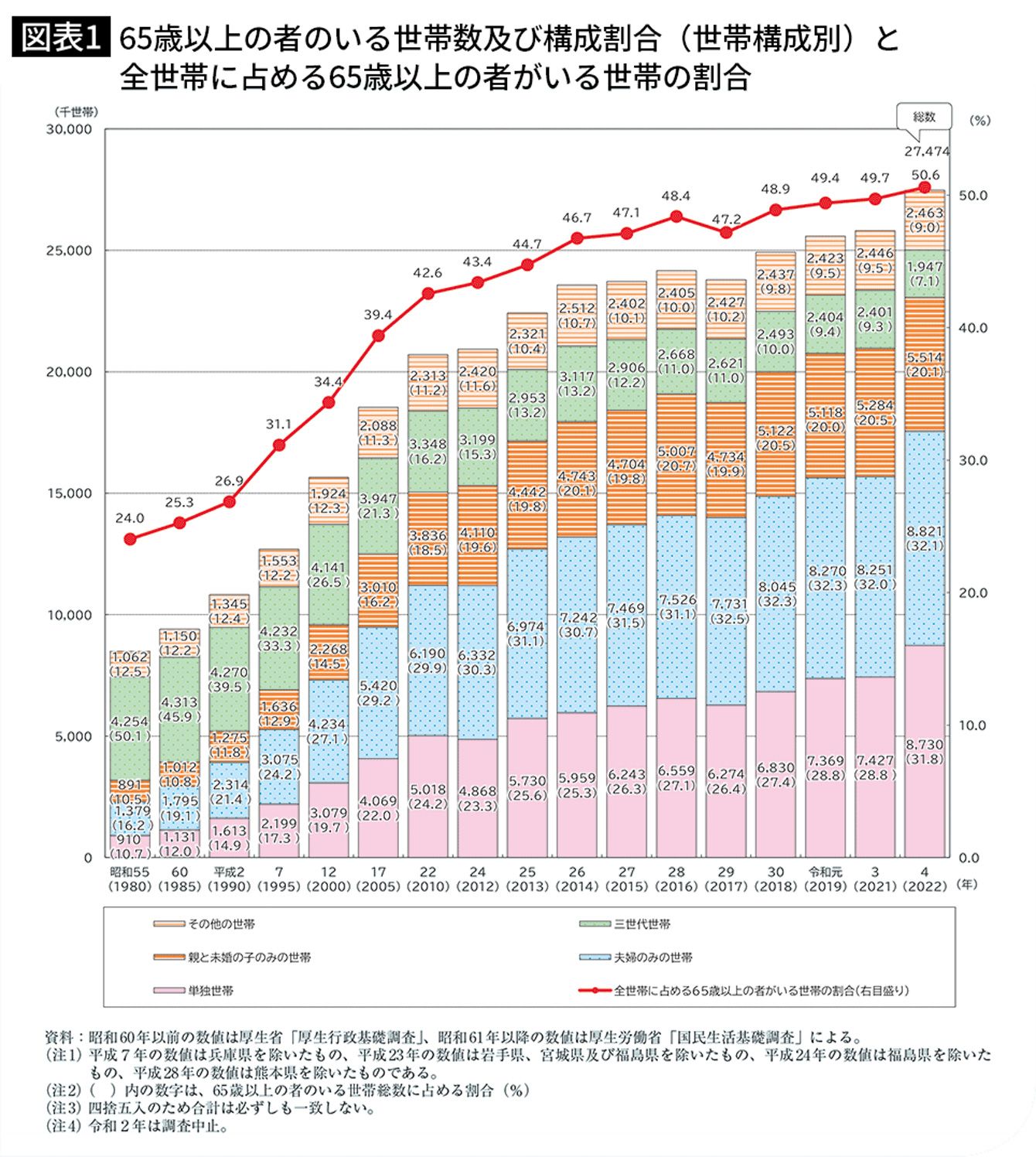 65歳以上の者がいる世帯構成、世帯の割合(出典=「
