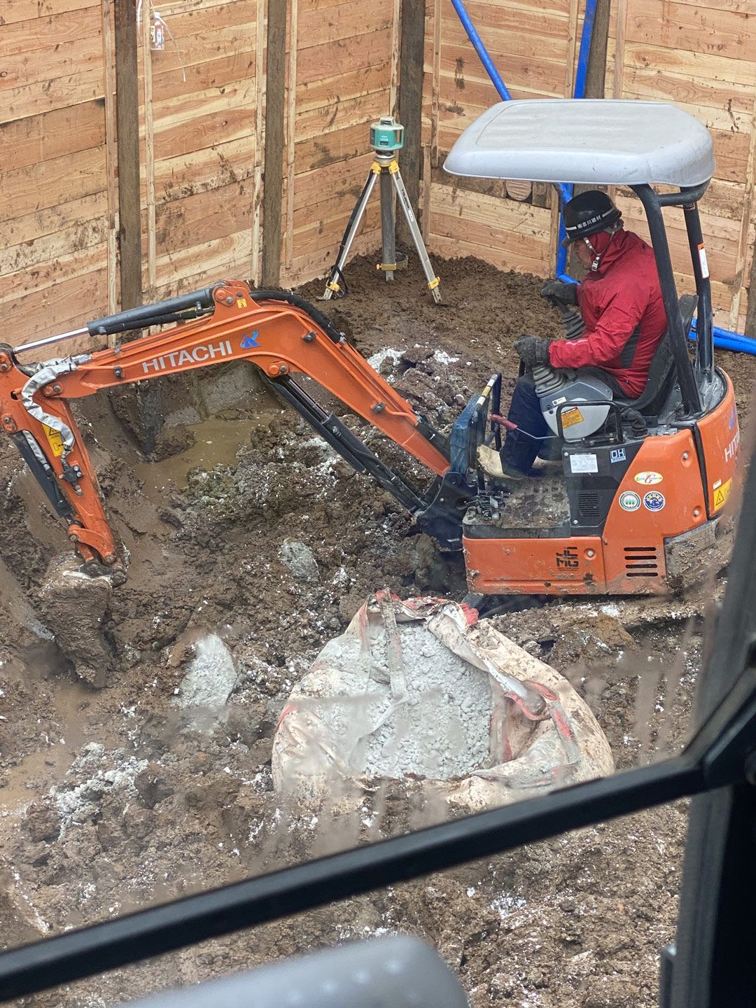 こちらはキャビン付きの大型ユンボ。窓がついているタイプは、東北や北海道など寒さの厳しい地域で導入されることが多い