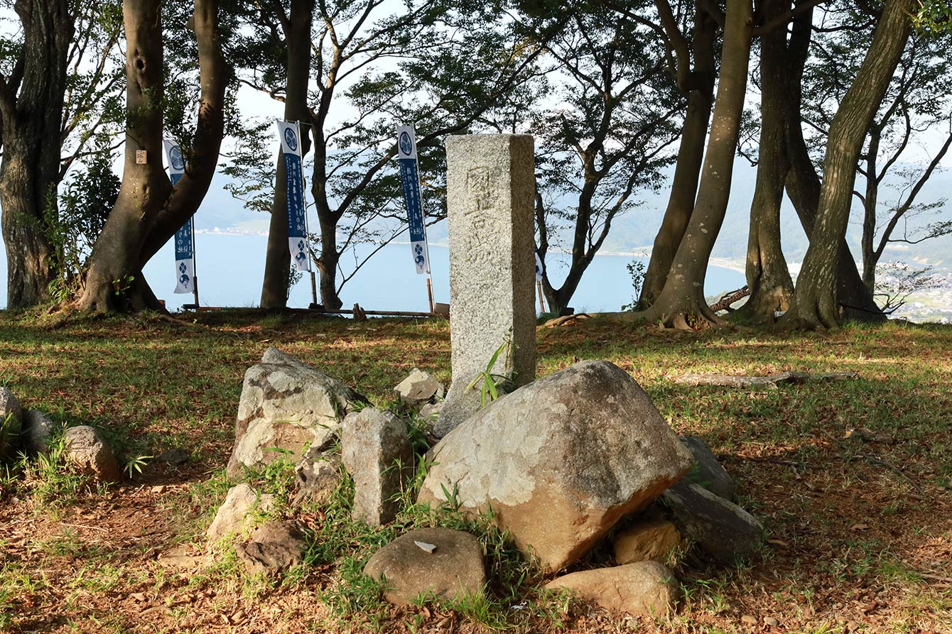天筒山城から北西の眺望。木ノ芽峠の山塊を越えた先が朝倉家の本拠