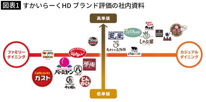 過去のすかいらーくHDポートフォリオ。ガスト・バーミヤンが低価格・ファミリーダイニングに入っている(すかいらーくHD 資料より)