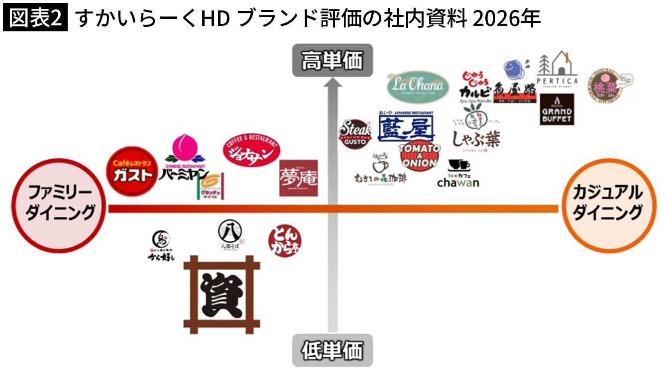 2026年現在のポートフォリオ。ガストなどが高価格に去り、跡に資さんが入った(すかいらーくHD 資料より)