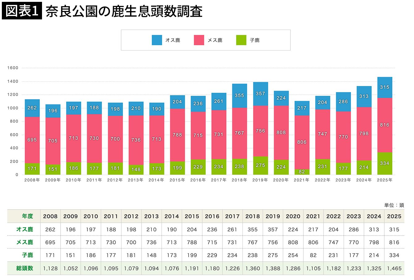 (奈良公園の鹿生息頭数調査、