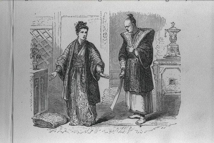 細川ガラシャの最期を描いた挿絵(ウィリアム・ダルトン著『ウィリアム・アダムス 日本における最初のイギリス人』1866年刊、国際日本文化研究センター所蔵)画像提供=国際日本文化研究センター
