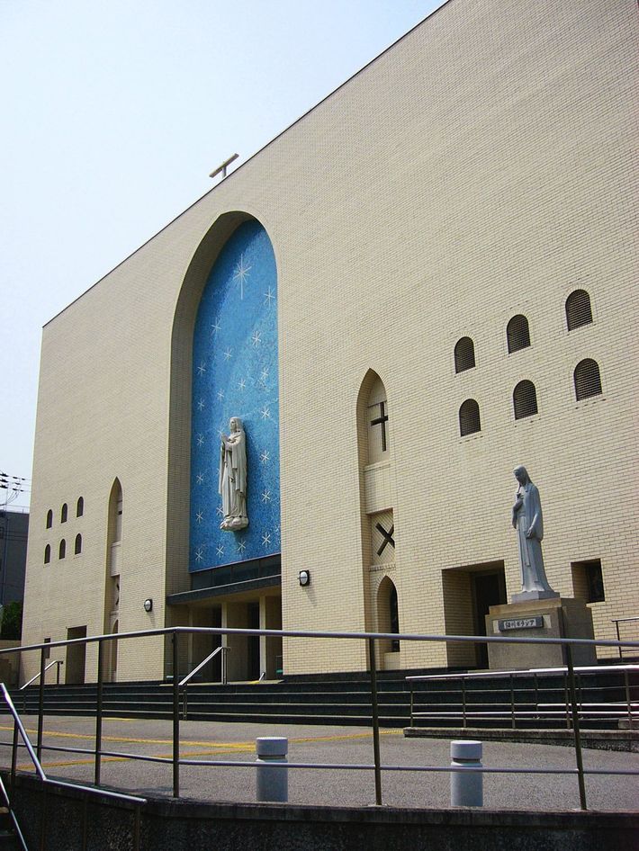 大阪高松カテドラル聖マリア大聖堂と細川ガラシア像(写真=663highland/CC-BY-2.5/