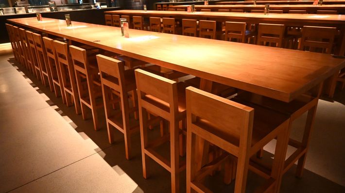 タイムアウトマーケットのメインフロア。開店1時間後の11時57分時点で、ひとりも座っていない