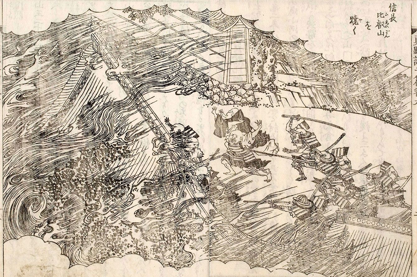 『絵本太閤記』の比叡山焼き討ち。国文学研究資料館所蔵/国書データベース