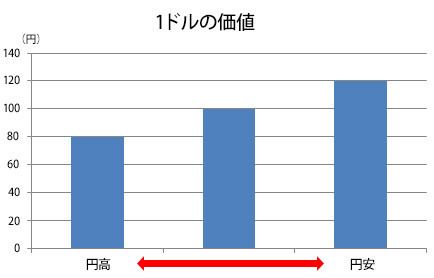 言葉と実際の意味とが混乱しやすい「円安・円高」。為替レートに伴うドルの価値の変動は、グラフで考えるとわかりやすい。