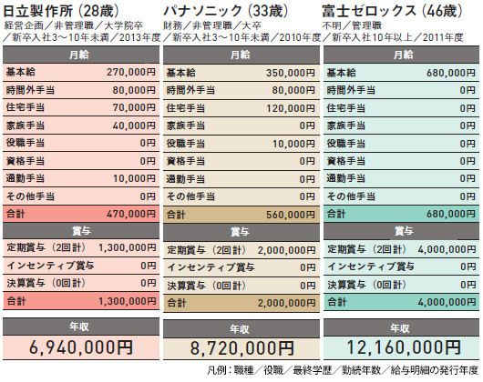 企業別年収:日立製作所(28歳)/パナソニック(33歳)/富士ゼロックス(46歳)