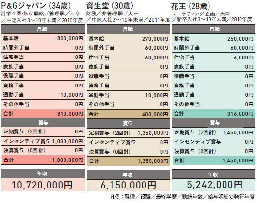 企業別年収:P&Gジャパン(34歳)/資生堂(30歳)/花王(28歳)