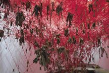 赤い糸と鍵が天井を覆い、人々の記憶が空間をさまよう。