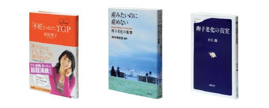 【写真左から順に】『「不妊」じゃなくて、TGP私の妊活日記』東尾理子(主婦の友社)/『産みたいのに産めない 卵子老化の衝撃』NHK取材班(文藝春秋)/『卵子老化の真実』河合 蘭(文春新書)