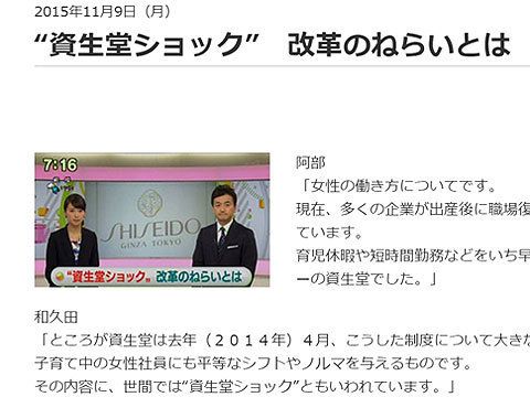 11月9日、NHKニュース おはよう日本で放送された「資生堂ショック」特集は大きな波紋を呼んだ。