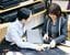 「バンチ見本」と呼ばれる生地のサンプルブックと、実際の反物を見比べながら進めていく。