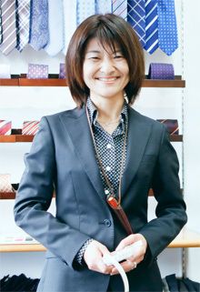オーダー紳士服、婦人服の専門店、OGGI HOUSE(オッジハウス)東京神田店の店長 堀越雅美さん。堀越さんが身につけるジャケット、パンツももちろんオーダーしたものだ。