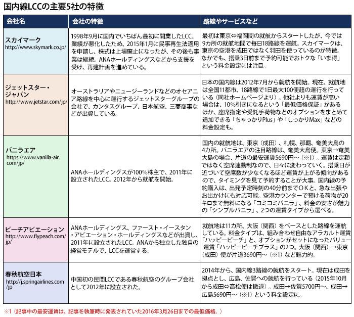 国内線LCCの主要5社の特徴