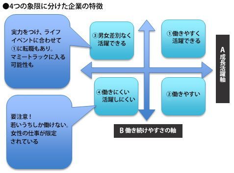 4つの象限に分けた企業の特徴