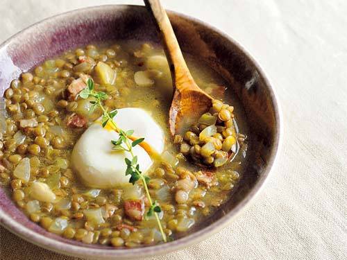 豆だくさんの食べるスープ「レンズ豆のスープ ポーチドエッグ添え」のレシピ