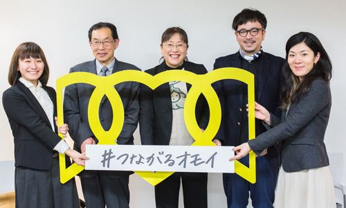 「つながるオモイ」キャンペーンのために集まったのは、左から順に「ラッシュジャパン」バイイングチーム・リーダーの黒澤千絵実さん、「南相馬農地再生協議会」杉内清繁さん、「いわきおてんとSUN」吉田恵美子さんと同・酒井悠太さん、「ラッシュジャパン」チャリティ キャンペーン・マネージャーの高橋麻帆さん