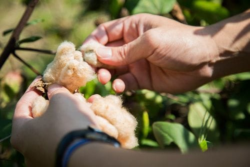茶色っぽい綿の風合いが特徴の、日本原産種「和綿」。収穫量が少なく稀少だ。
