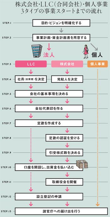 株式会社・LLC(合同会社)・個人事業 3タイプの事業スタートまでの流れ